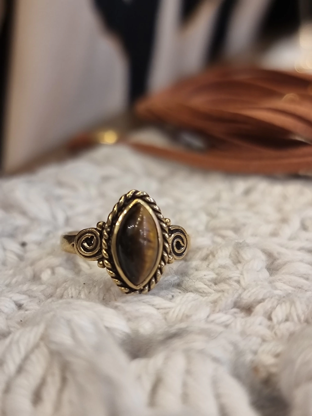 Anillo confeccionado en bronce y piedra natural, diseñado en India.
