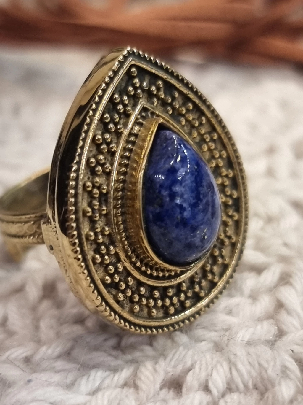 Anillo confeccionado en bronce con piedra natural, diseñado en India.