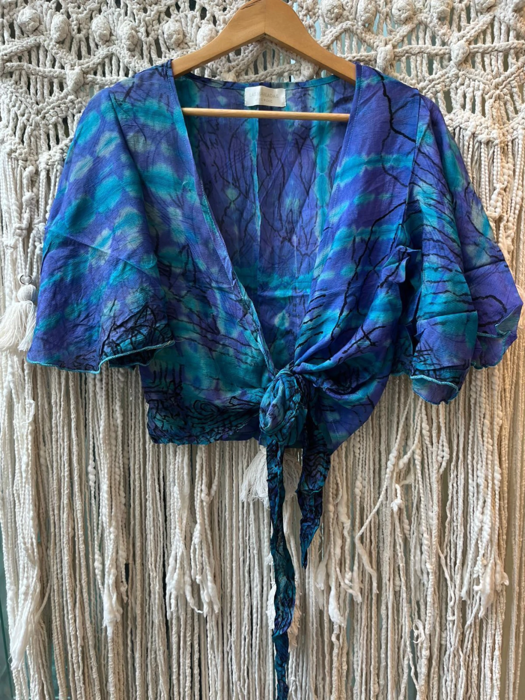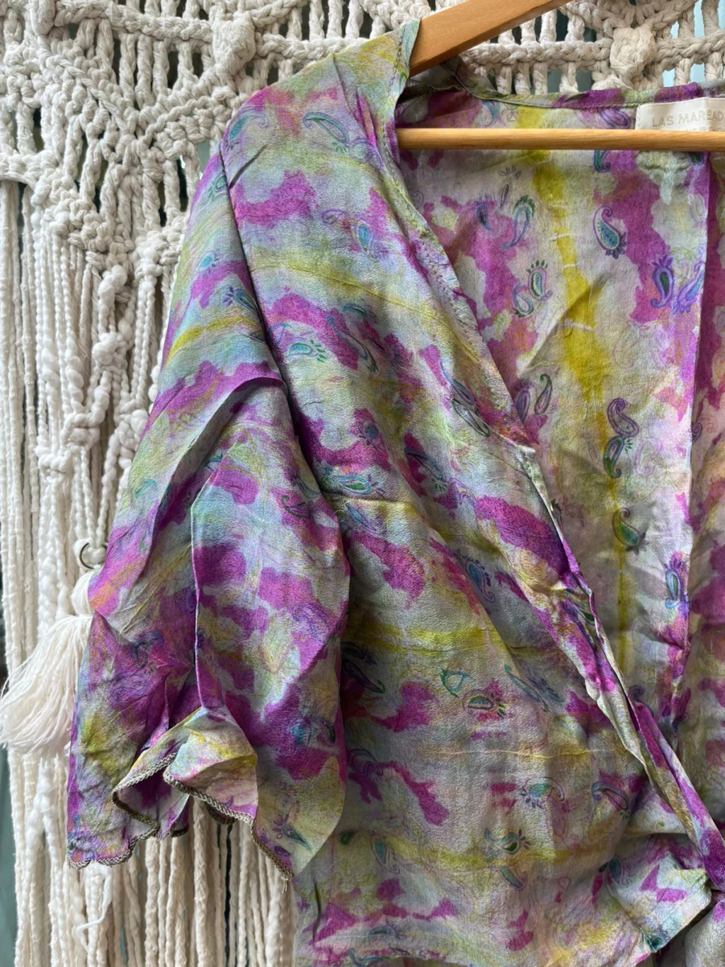 Nuestra Blusa Batick se destaca por su versatilidad a la hora de su uso. Se puede usar de día y de noche, tanto abierta como cerrada.