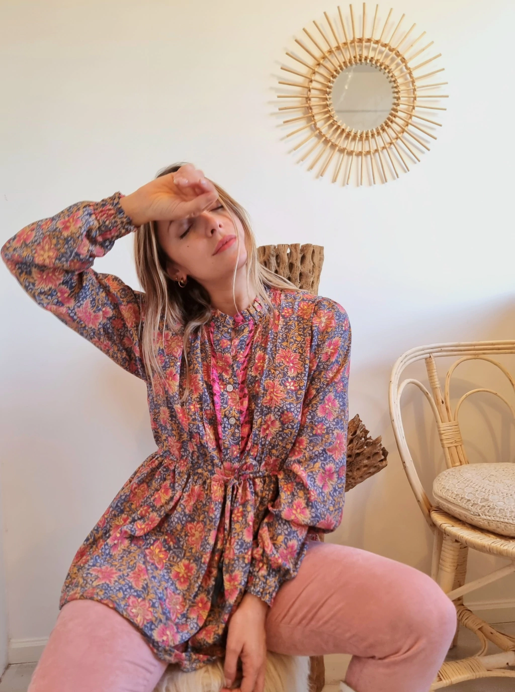 Blusa confeccionada en seda gold saree de la India.