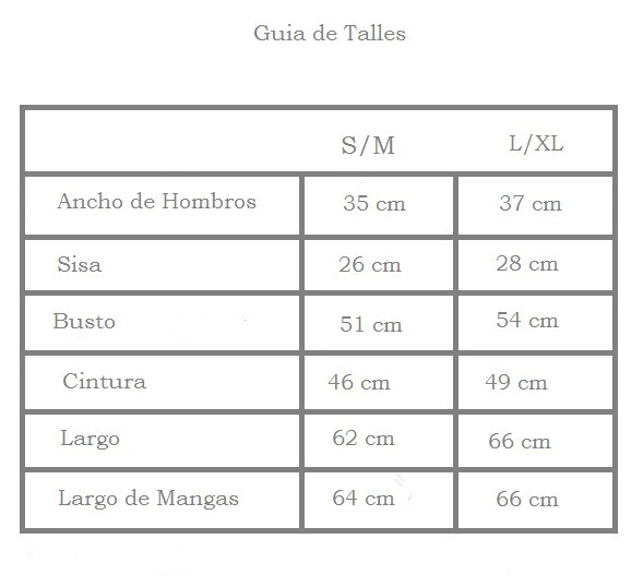 Largo de mangas: 60cm