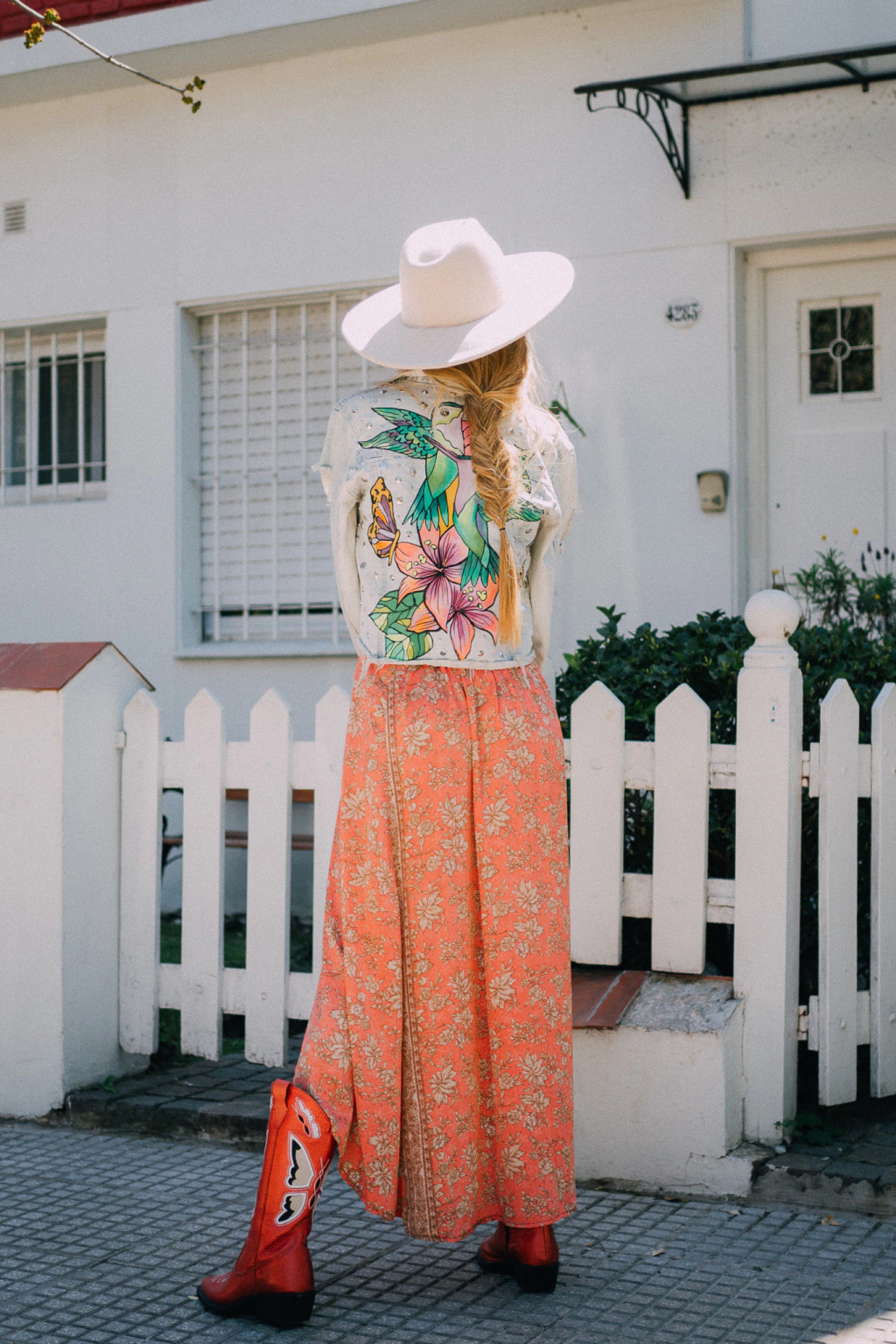 Falda larga que cruza por el frente posee un elastico por la cintura trasera.