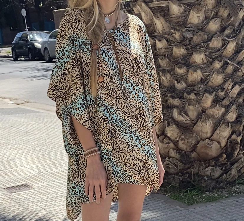 Túnica confeccionada en gold saree, posee escote espejo y mangas, su largo es por debajo del gluteo .