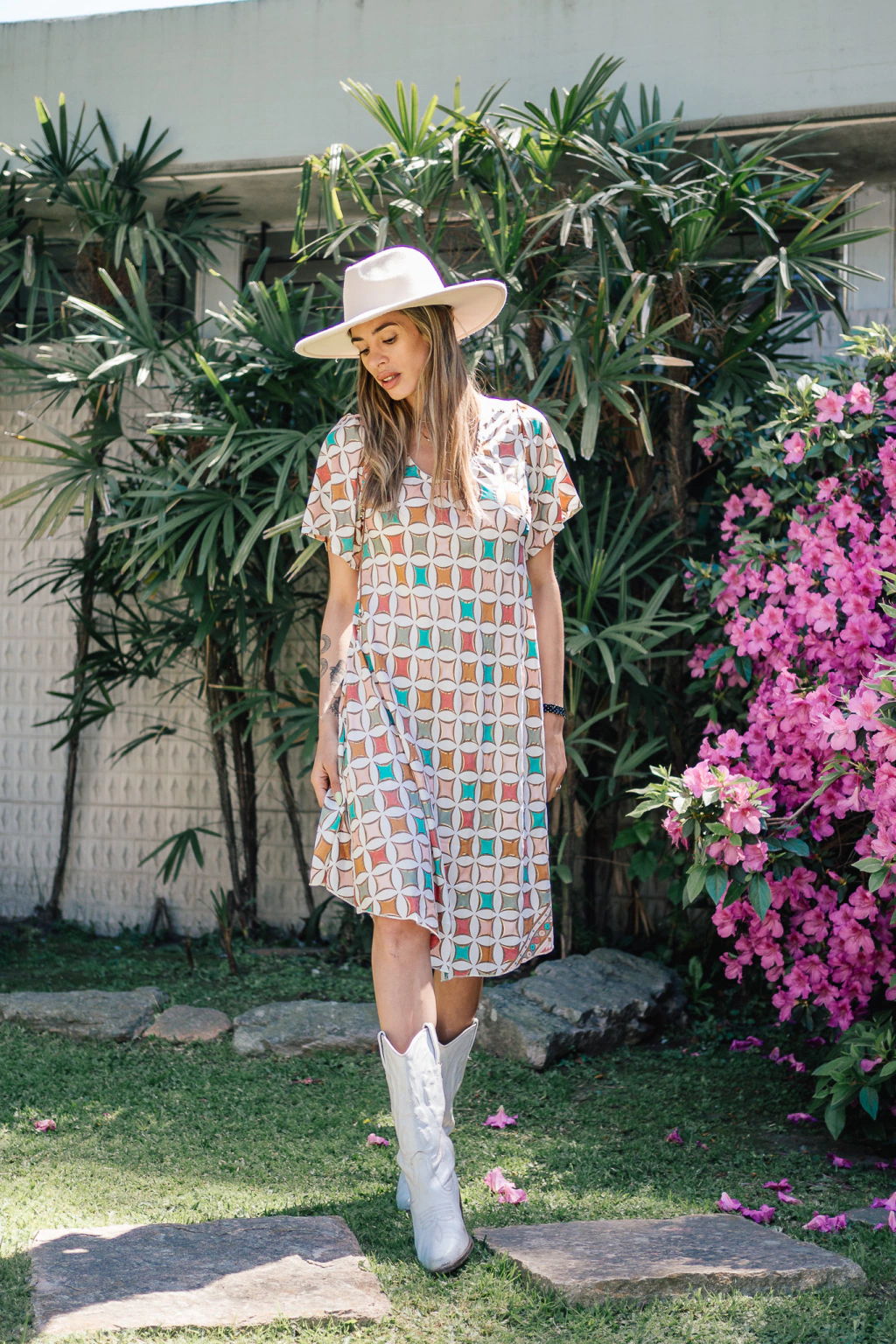 Vestido clasico cortado al bies largo por debajo de las rodillas, de escote redondo con lazos que atan por detras de la espalda con detalle con borlas, posee mangas cortas. ¡Un clásico!