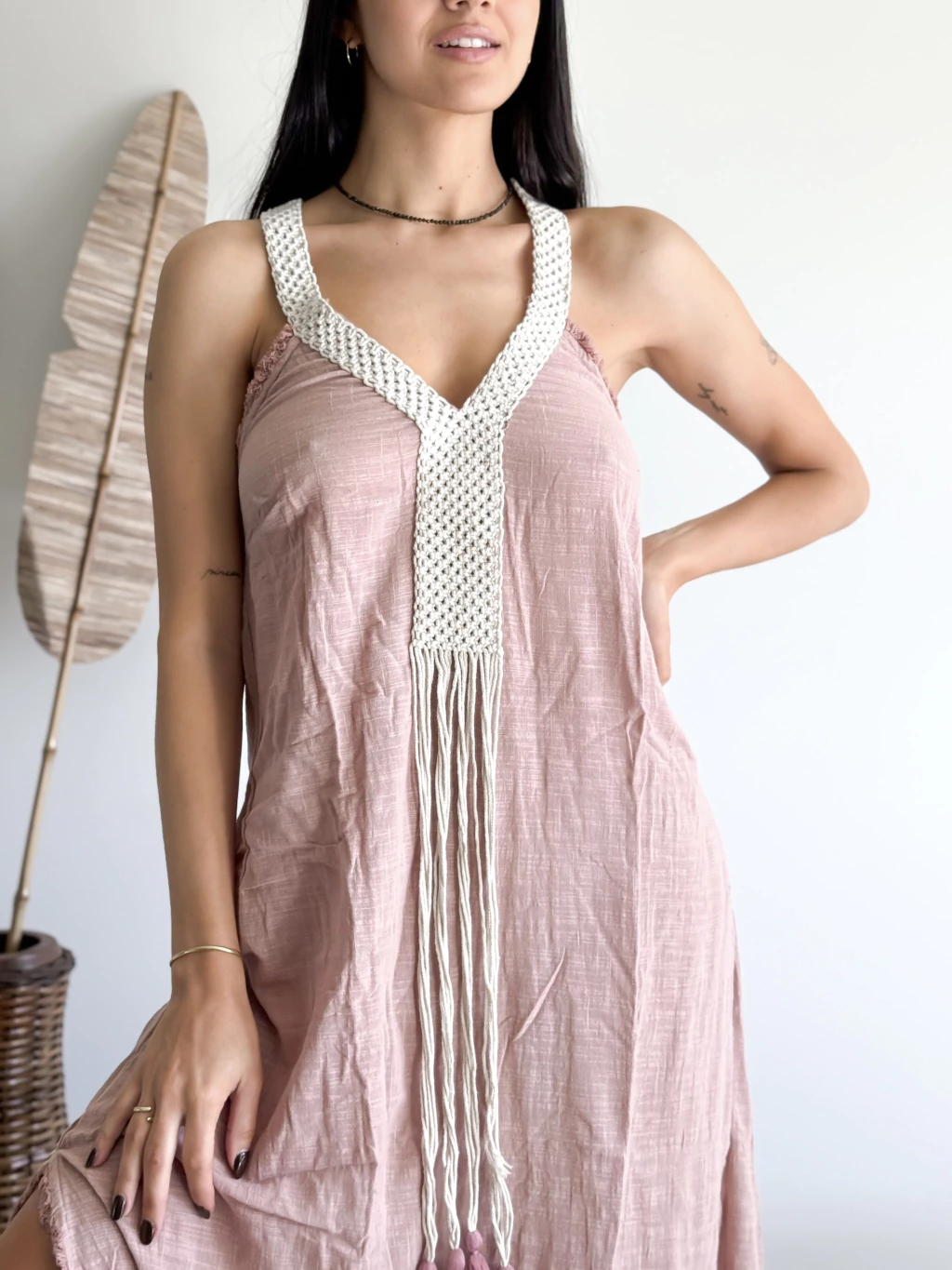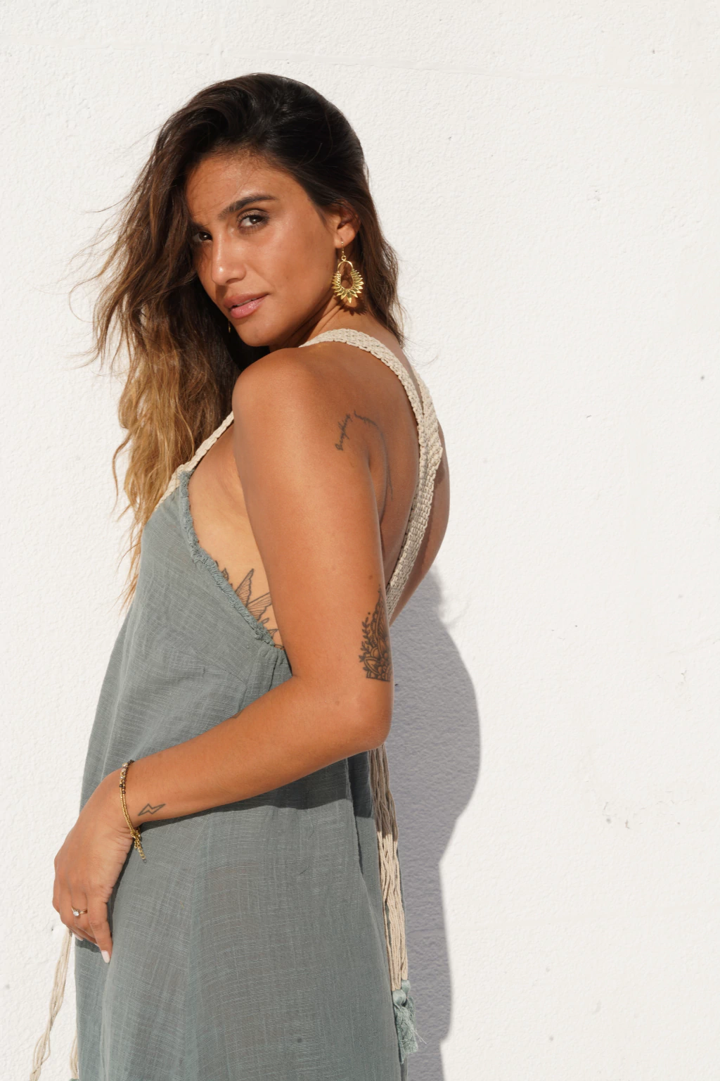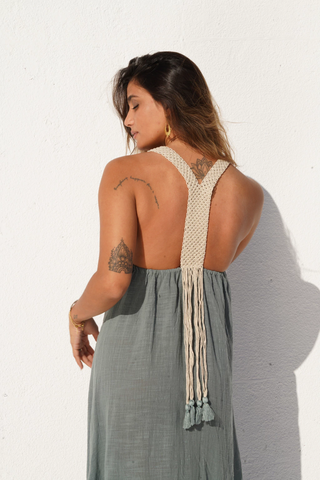 Vestido Ibiza largo con tajo al costado, escote V. Confeccionada en algodón orgánico. Talle único.